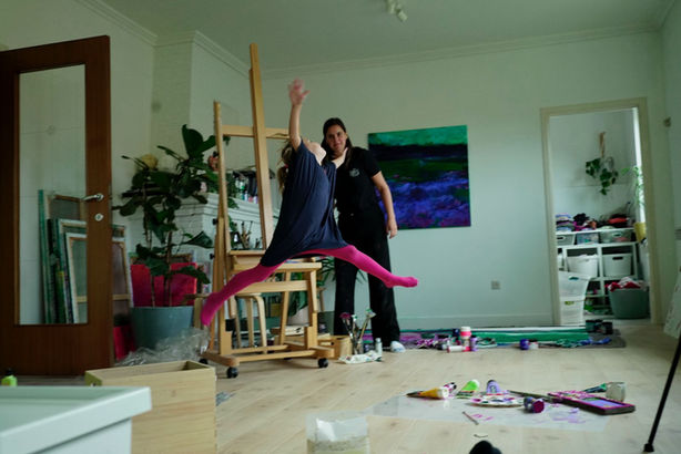 's Avonds valt het mooiste zonlicht naar binnen, wat de ruimte een bijna magische sfeer geeft. Het is dan dat Indra vaak verder werkt aan haar schilderijen, wanneer het huis stil is en de dag langzaam vervaagt. Het veranderende licht beïnvloedt haar werk: contrasten worden sterker en nieuwe details komen naar voren. In die avondlijke rust voelt ze zich vrijer om artistieke risico’s te nemen en nieuwe dingen te proberen.